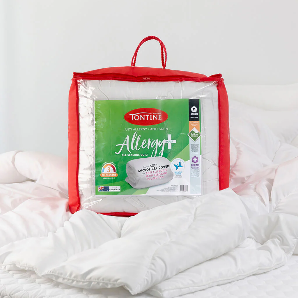 The cover of this machine washable quality Australian made Tontine Allergy Plus quilt has been treated with Teflon fabric protector with dual action protection to repel and release stains. For added peace of mind, this quilt is approved by the National Asthma Council of Australia’s Sensitive Choice™ program.